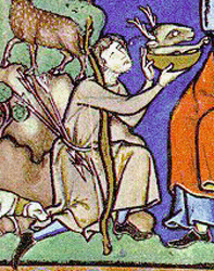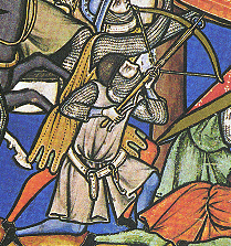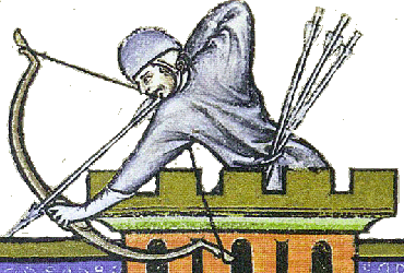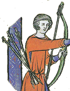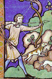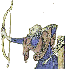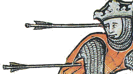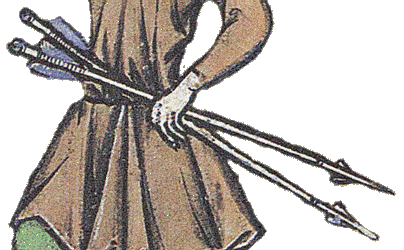 La troisieme flèche est elle pourvue d'une "pointe" plate. L'enluminure ne permet pas de déterminer si il s'agit d'une pointe conique destinée à assommer le petit gibier (une pointe perçante le traverserait totalement, et il irait mourir plus loin sans que le chasseur puisse le retrouver) ou d'une pointe tranchante (moins fréquente car d'une utilité plus limitée).