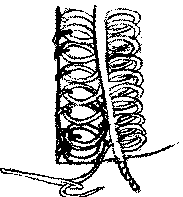 Pour ma part, je commence comme pour la fabrication de la mailles classique par la constitution de ressorts (voir n°0) puis au moyen d'un marteau, j'aplatis doucement ces ressorts, sans les écraser afin d'obtenir des bandes ressemblant à des anneaux posés l'un sur l'autre.