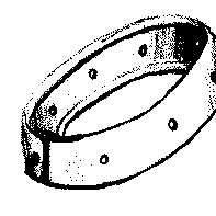 Vous allez pouvoir maintenant procéder au perçage derniere phase avant l'assemblage. Prenez le bandeau (la pièce de 70 cm de long), et tordez le doucement (ourlets vers l'intérieur) afin d'en faire un anneau. Placez le autour de votre tête, et ajustez le de manière à ce qu'il soit un peu trop grand pour vous. En effet, trop serré, le port du casque serait une torture pour vous. Pensez que vous pourrez être amené par la suite à porter par dessous un rembourrage de mousse et/ou un camail de mailles. Reperez bien la taille vous convenant, marquez la, et percez un trou bien centré au point de superposition des deux extremités du bandeau (après l'avoir enlevé de votre tête malheureux !) se sera le devant du casque. Percez aussi le bandeau de la même manière au dos du casque, sur les cotés, ainsi qu'aux points médiants entre ces quatres premiers trous.