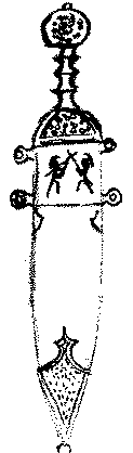 L'intérieur étant fréquemment garnit de toison de mouton; l'élasticité de la laine permettant de maintenir la lame en place, alors que les poils orientés vers le haut facilitaient l'extraction de celle ci. De plus le lanolin contenu dans la toison protégeait contre la rouille en maintenant l'acier graissé.Ce type de fourreau datait déjà de temps immémoriaux et persista encore bien longtemps par la suite; seule sa forme extérieure évoluant en fonction de l'arme qu'il devait contenir (pour ceux qui ont du mal à suivre, ce n'est pas le même fourreau qui changeait de forme, mais on en fabriquait un pour chaque dague ou épée, c'est mieux comme ça ?).
