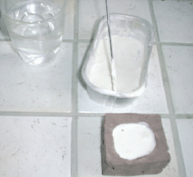 Barbouiller l'intérieur de l'enceinte, de graisse (vaseline) pour que le platre/élastomère ne colle pas partout quand on le coulera dedans.