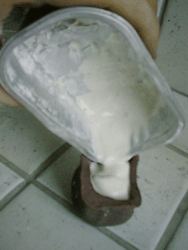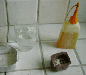 Préparer le matériau de moulage, en quantité nécéssaire et suffisante (bref trop à tous les coups), et en faisant attention aux bulles (les plus fortunés pourront acheter une machine à vide pour les éliminer).
