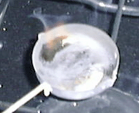 Pour les métaux utilisés, méfiez vous de la soudure d'électronicien, elle contient une résine destinée à la rendre souple, qui en plus de faire des projections brulantes et collantes partout, s'enflamme quand elle est au dessus du feu La photo suivante à été prise une minute après le début des flammes alors qu'elles diminuaient, le temps que je prenne l'appareil. Elles sont montées à 30 cm de haut !